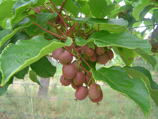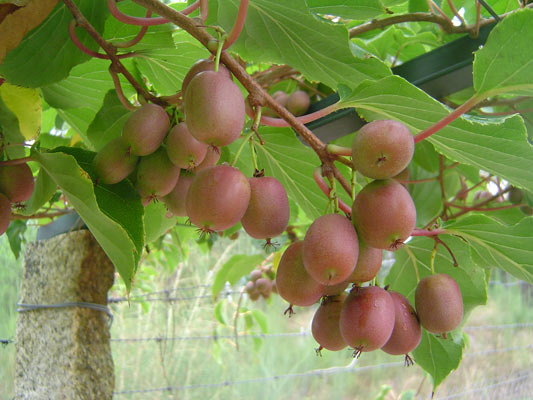 También cultivamos kiwitos ecológicos de tamaño menor que el kiwi y de color rojo. Se trata de una planta trepadora muy vigorosa y resistente al frío. Su sabor es dulce y suave. La recolección se hace manualmente del árbol entre finales de agosto a principios de octubre.